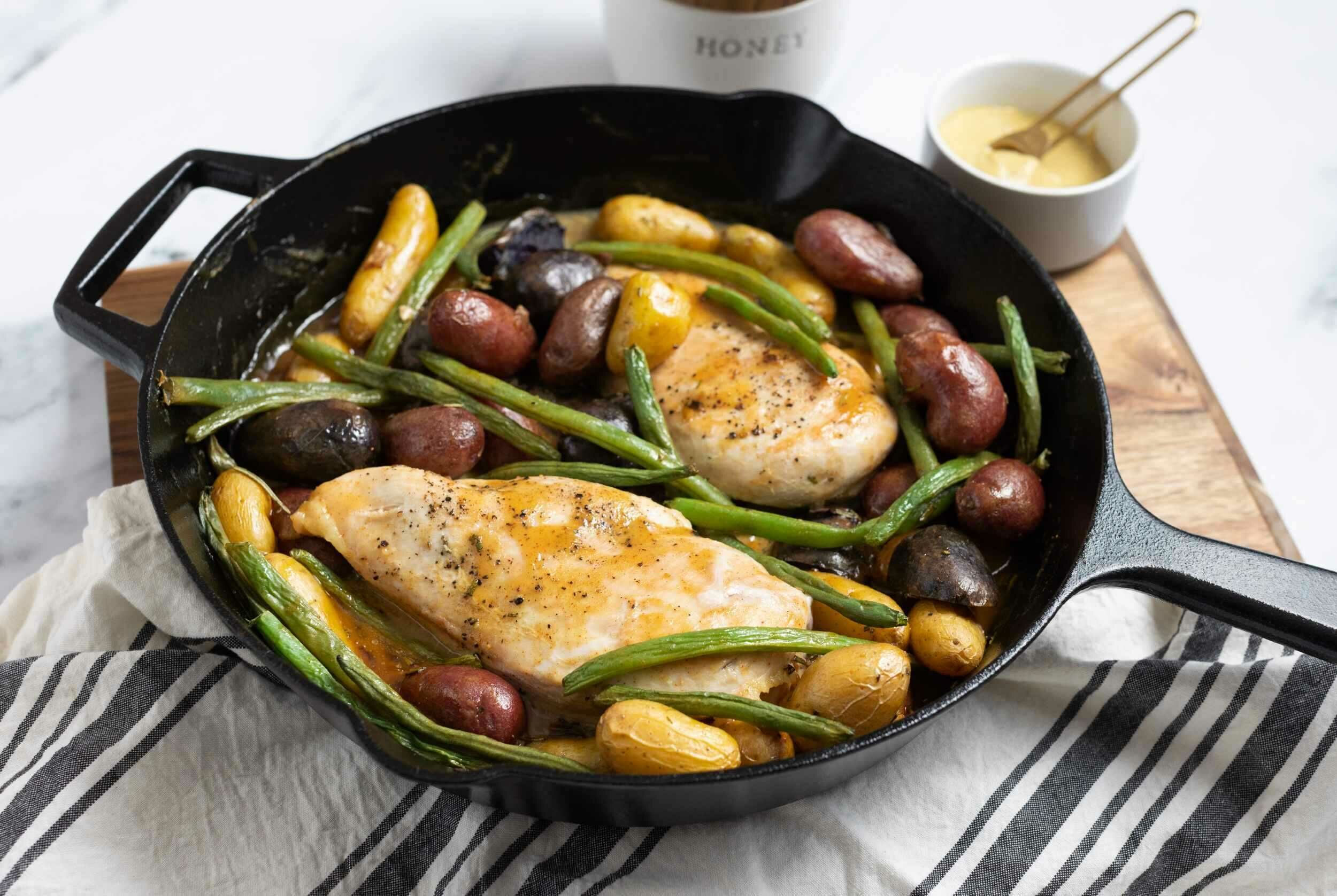 One Pan Honey Mustard Chicken and Vegetables The Modern Proper The Modern Proper One Pan Honey Mustard Chicken Gluten free · 1 hr 15 mins. they’re seared in a skillet in oil before making a simple honey mustard pan sauce in the same skillet, deglazing the pan with chicken. And the creamy honey mustard cream sauce is amazing on rice, potatoes, and roasted veggies, too! Today we're sharing this one. it’s an easy one pot honey. The Modern Proper One Pan Honey Mustard Chicken.